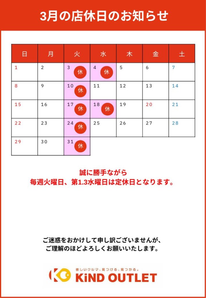 【3月定休日のお知らせ】